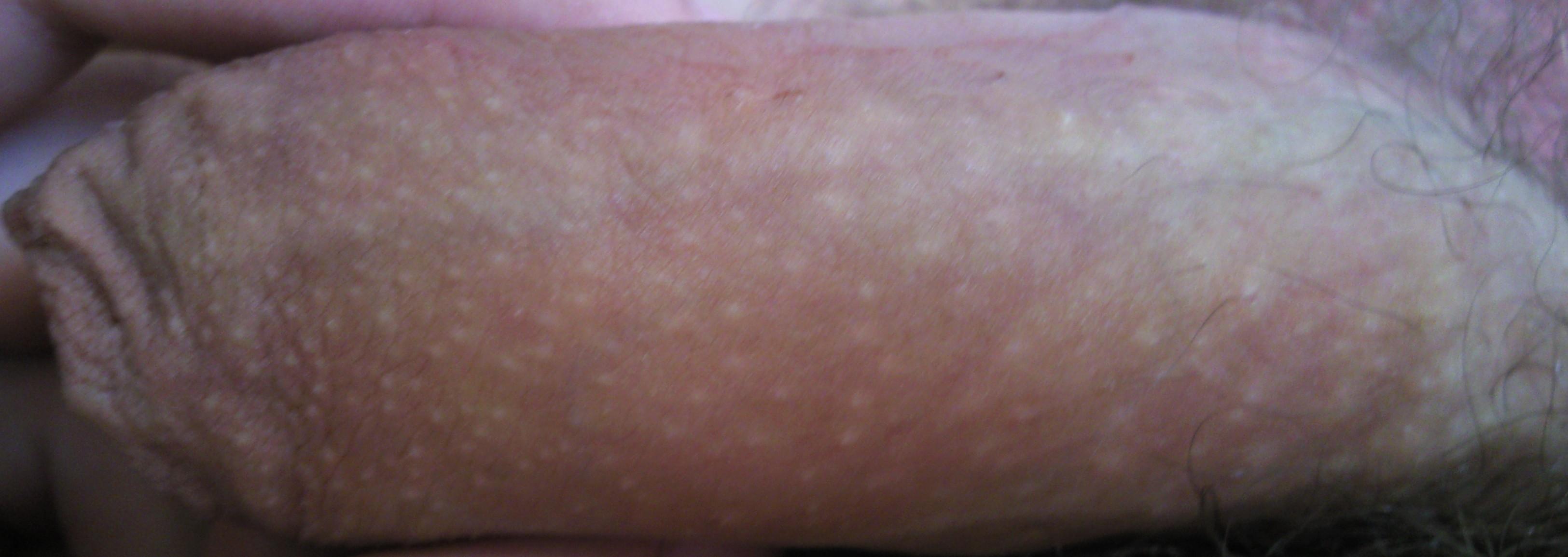 И ещё вопросик: по всему члену под кожей расположены белые пупырышки (возможно сальные кисты, но я не уверен), не чешутся, не беспокоят, при сдавливании становиться очень больно, но они не лопаются. Выглядит очень жутко!!! Что же это такое и как от этого можно избавиться??? Кстати они и на мошонке есть, но там они у всех и меня это не беспокоит.
