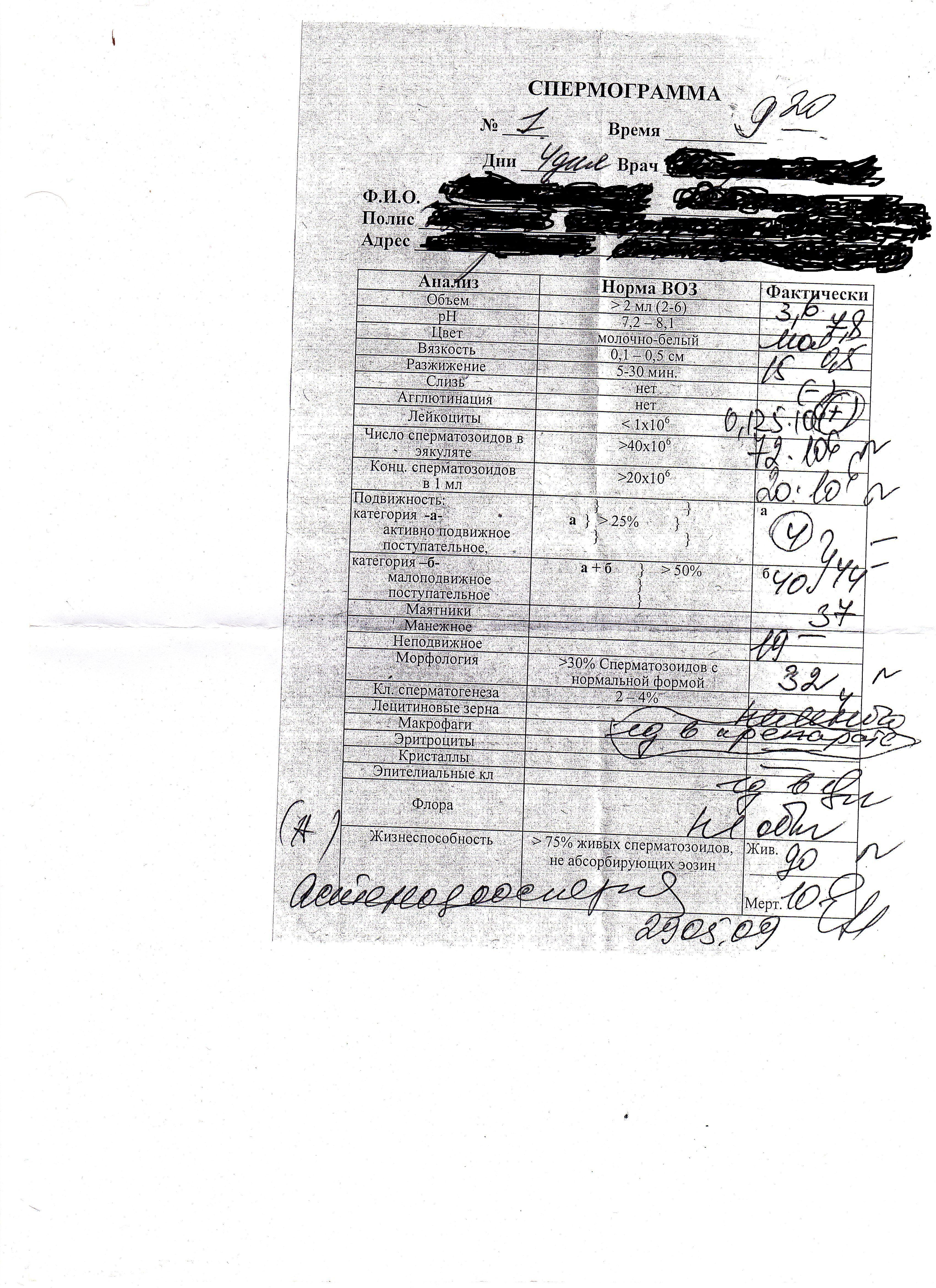 Расшифровка спермограммы