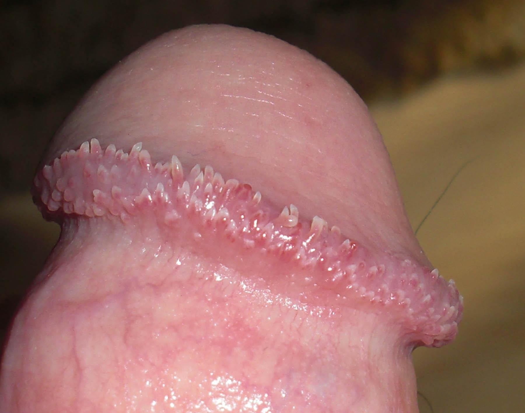 в 11 лет обнаружилось, что кожа члена слиплась с основанием головки...с помощью пинцета это исправили...потом я обнаружил, что у основания головки есть небольшие белые отростки (фото)...при прикосновении к основанию головки становится неприятно...если переборщить в сексе, то основание начинает немного побаливать...в чём дело? что это?