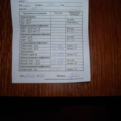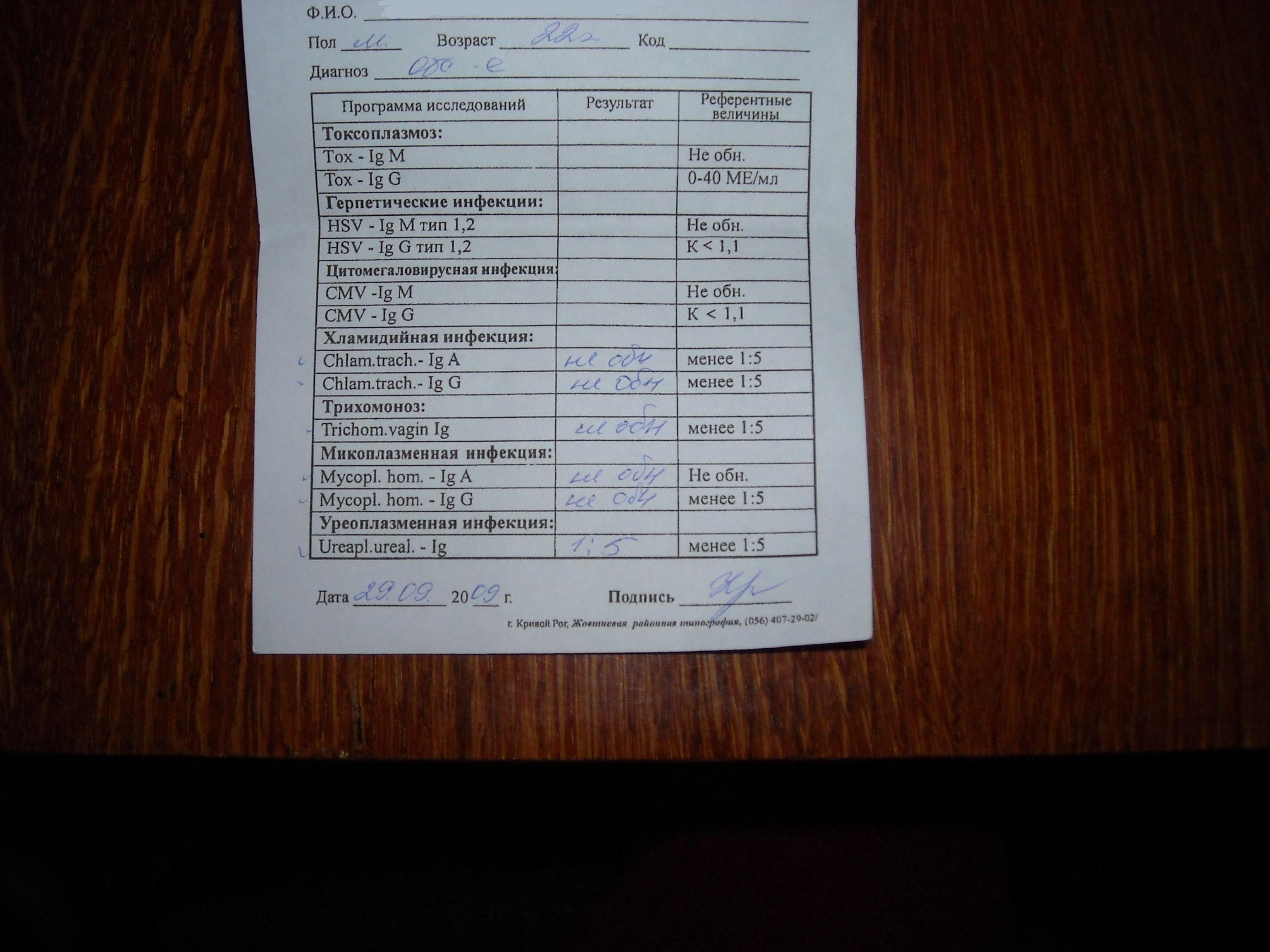 Сегодня получил результаты анализов, они прикреплены в файле... Скажите, пожалуйста, вот там где уреаплазма 1:5, а референтная величина менее 1:5, это означает, что у меня эта инфекция есть? Плюс у меня на головке появилось какое-то белое пятно, ближе к уздечки на левой половинке головки. Ходил к врачу, врач меня вообще не впечатлил, такое ощущение, что она ничего не знает, это уже 2 врач к которому я ходил! Вообщем нет у меня желания, что бы они меня лечили... У меня к вам просьба, если эта инфекция все же есть, то не могли бы вы написать мне лечения, ну какие препараты нужно купить и, что бы я дома лечился?! Очень Вас прошу!!! В больнице уже, сколько денег выкачали...
