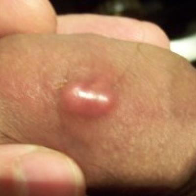 Здравствуйте. У меня на члене на коже возле головки снизу появился прыщ неделю назад. Сначала он был твердый маленький но потом начал увеличиваться и краснеть. Недлюспустя он стал диаметром 5мм. Мне показалось что прыщ появился в месте где рос волос. К сожелению в ближайшую неделю к врачу попасть н могу так как нахожусь в командировке з границей. на лево не хожу. Прикладывал ихтеоловую мазь, смазывал йодом. Как эту штуку лечить, подскажите пожалуйста.