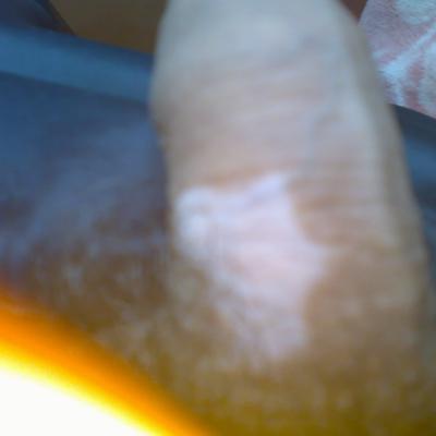Здравствуйте доктор! Мне 20 лет у меня на коже пениса появилось большое белое пятно с чёткими краями оно не болит не чешится не шелушится вобщем ни как себя не проявляет только видно и всё скажите пожалуйсто какие это могут быть болезни и чем можно помазать это пятно мне очень не посебе когда я вижу свой член пожалуйсто помогите в больницу идти стесняюсь. Посмотрите фото!Зарание огромное спасибо!