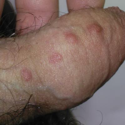 На стволе члена и мошенке появляются и исчезают красные бугорки. уже больше 2-х месяцев. Наощупь не очень твердые. Если выдавливать, то появляется безцветная жидкость. не болят. Иногда есть небольшой зуд. Если прижеч йодом, то исчезают, но через пару дней снова появляются на том же месте. Бензилбезонат и атибиотики/противогрибковые препараты эффекта не дают.