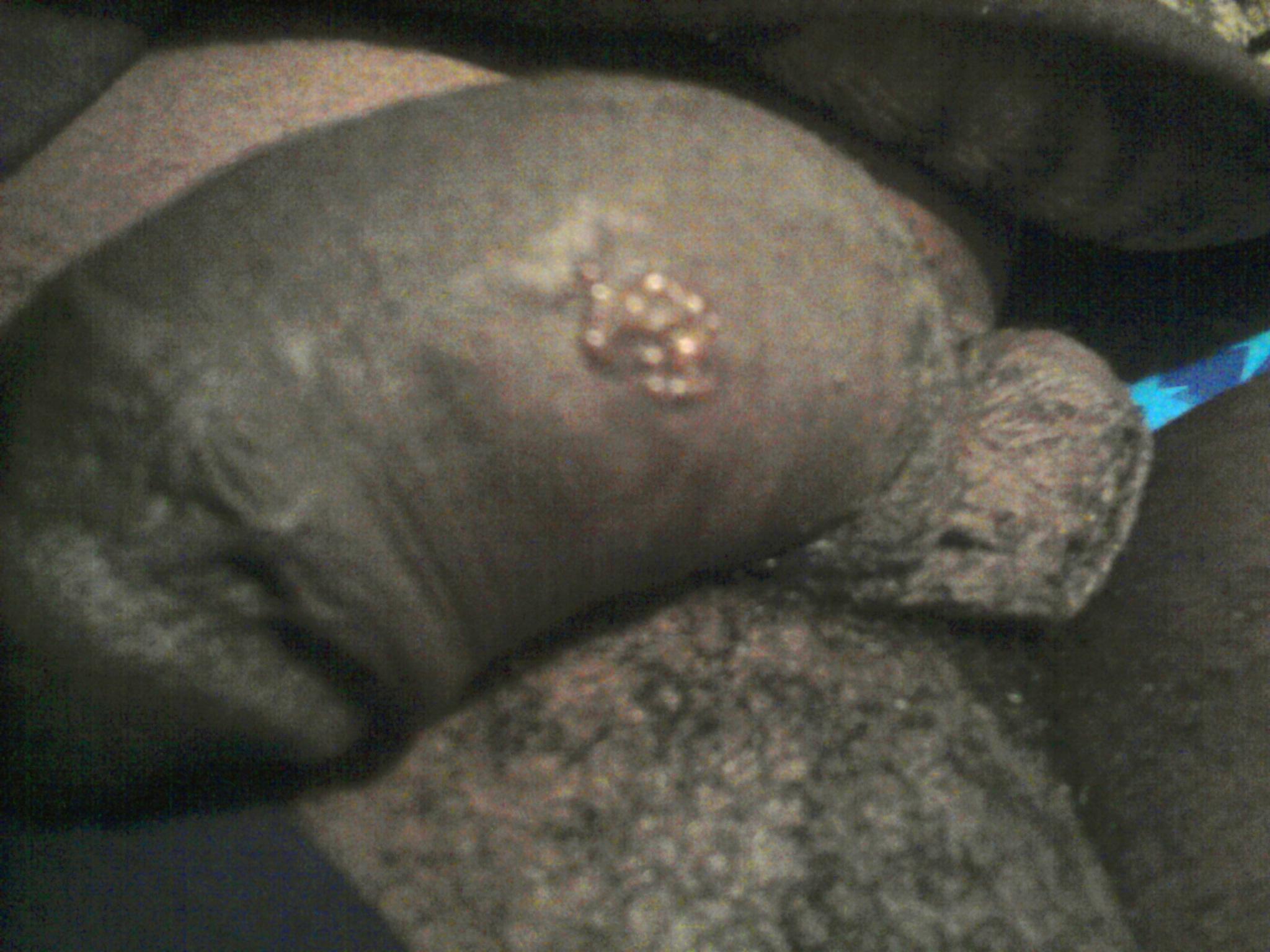 Здравствуйте. Доктор, я проснулся утром и обнаружил это на моем половом органе. Скажите пожалуйста, что это и стоит ли мне волноваться. Они прозрачный, как-будто внутри вода, не чешутся, но больно, когда к ним прикасаешься. Заболеть не мог - месяц назад проверялся (результат отрицательный), девушка постоянная (она тоже чистая). Очень волнуюсь, помогите пожалуйста.