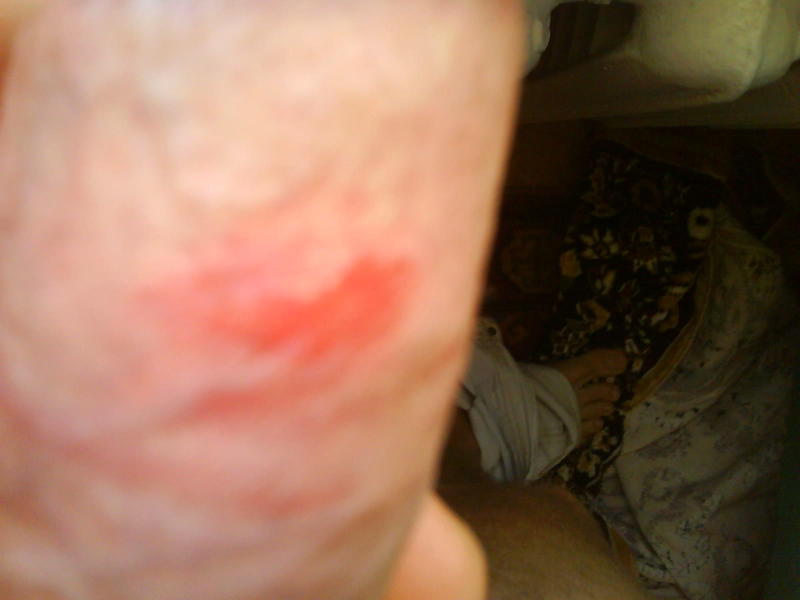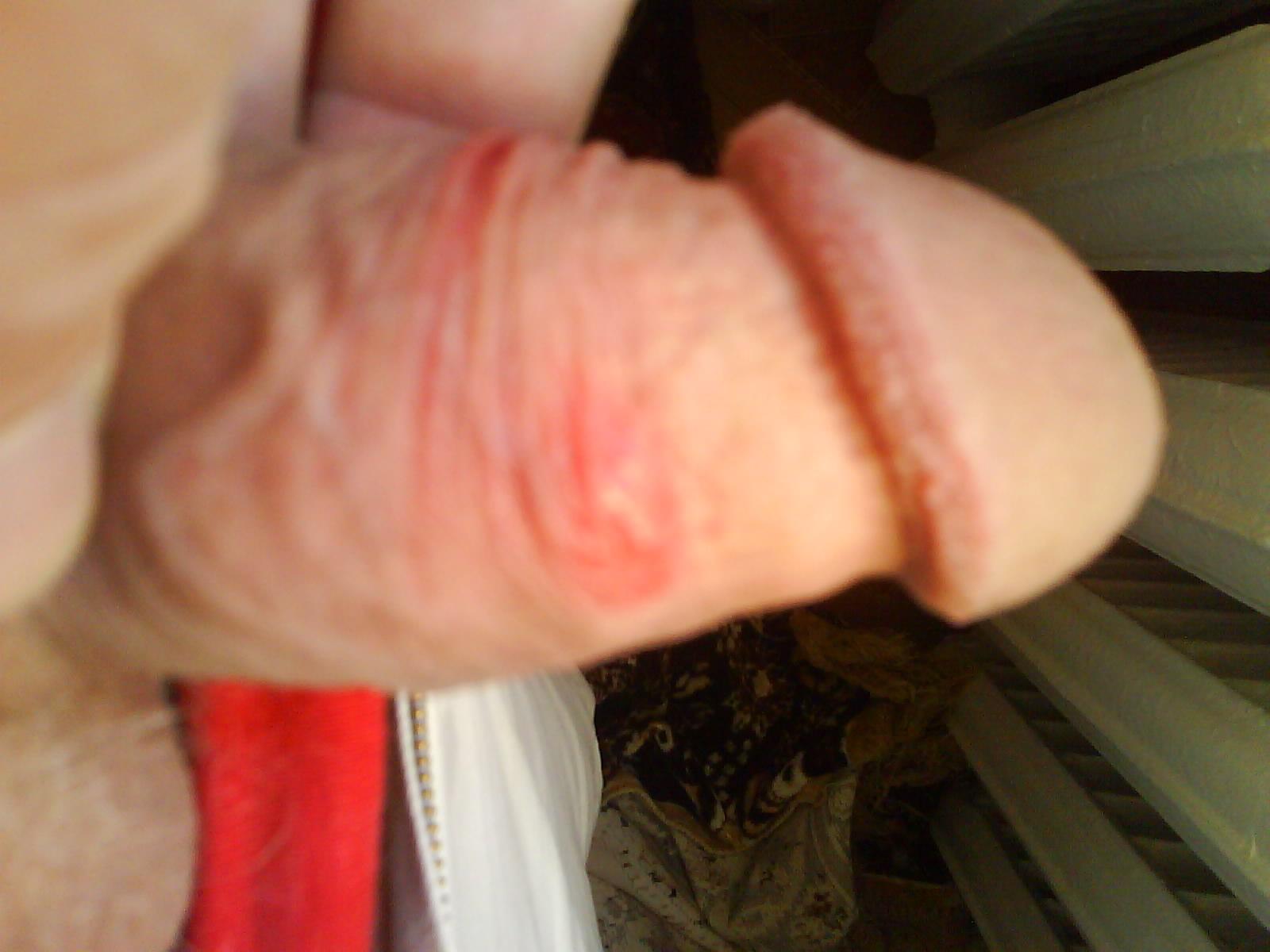 дравствуйте!!!мне 20 лет. у меня 1 месяц назад,на стволе члена появились два красных пятна.на вид немножко влажные...после полового акта пятна восполяются еще больше и немного печет.после мытья покрываются сухой корочкой.был у врача здавал мазок,не чего не нашли.с диагнозом не определились.выписали мазь "клотримазол",не помогает.Доктор,подскажите что это может быть и как от этого вылечится??? за ранее Большое спасибо за Ваше беспокойство...Вот фото:
