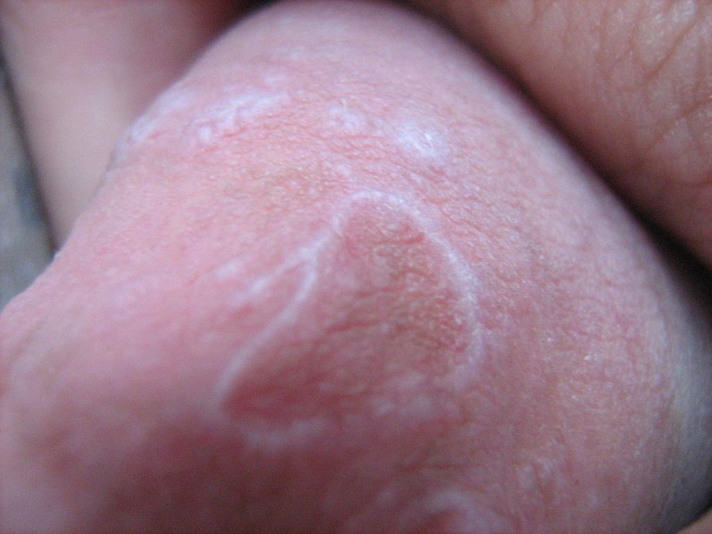 Под головкой пятна и бугорки белого цвета,что это может быть и как лечить?