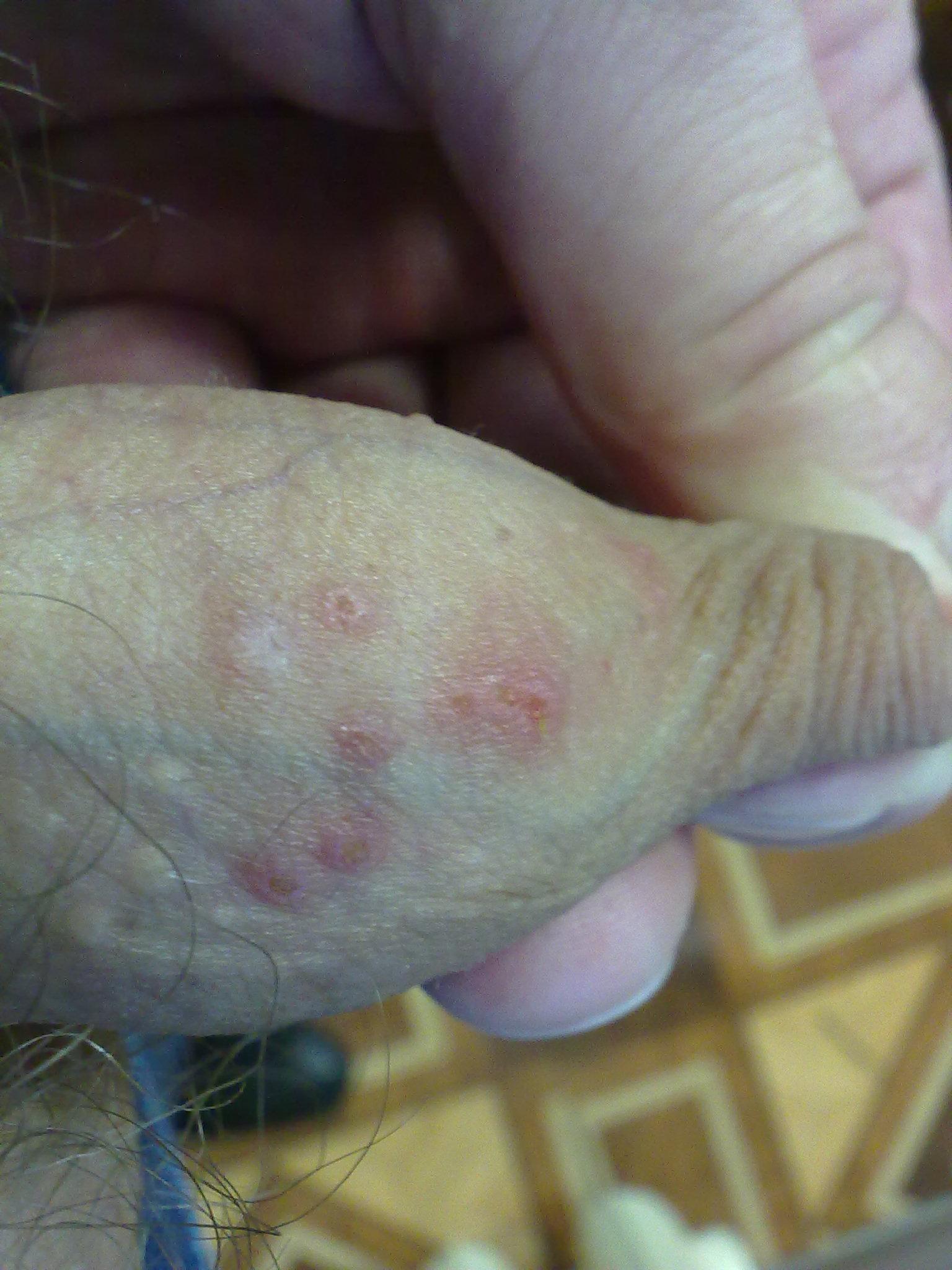 Добрый день три недели назад вскочил прыщик на коже полового члена и на плоти под головкой маленькие волдырики не чешется