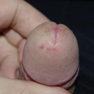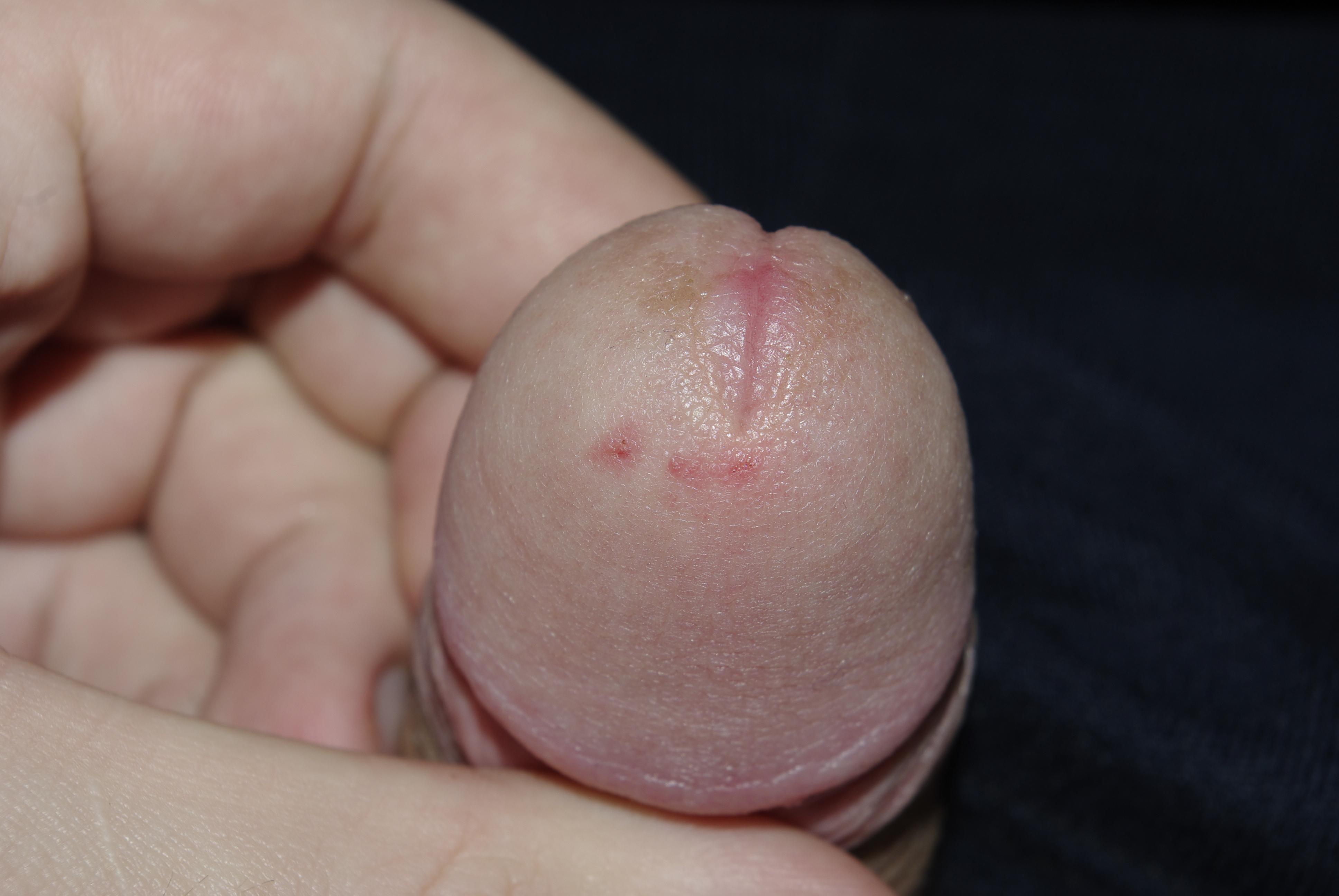 сегодня заметил на головке небольшое покраснение, которое не болит, может это быть просто какая-нибудь натертость?В приложенном файле фотография покраснения.