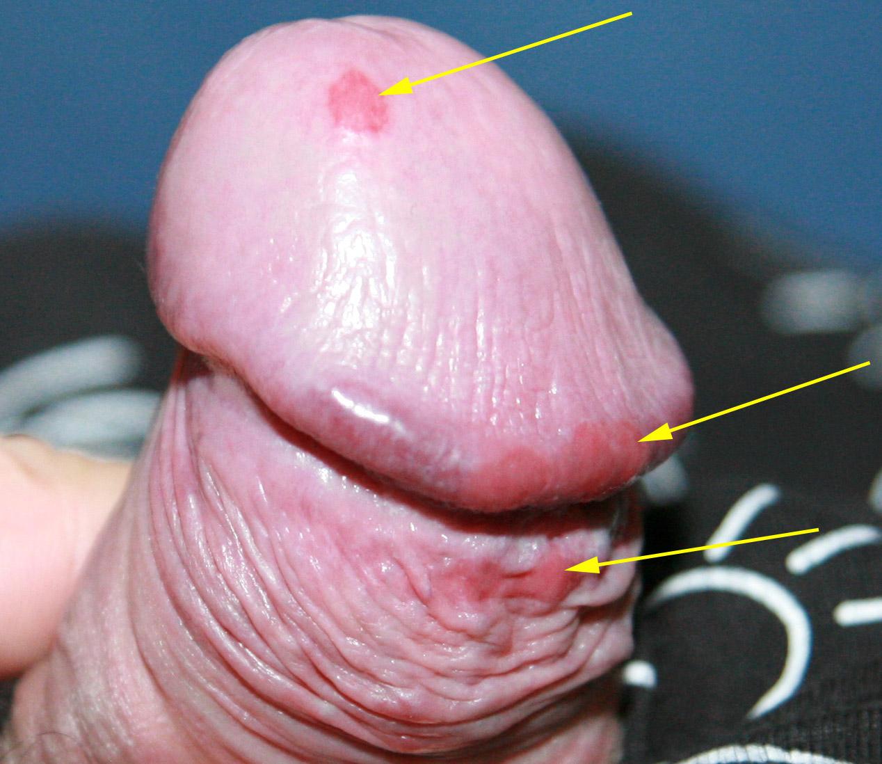 Добрый день, недавно обнаружил красное пятнышко на головке члена и покраснения по окаемке и крайней плоти.