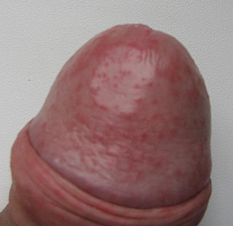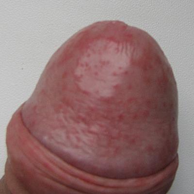 - появилась красноватая сыпь по всей головке члена, не чешется, выделений нет;