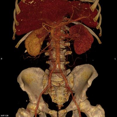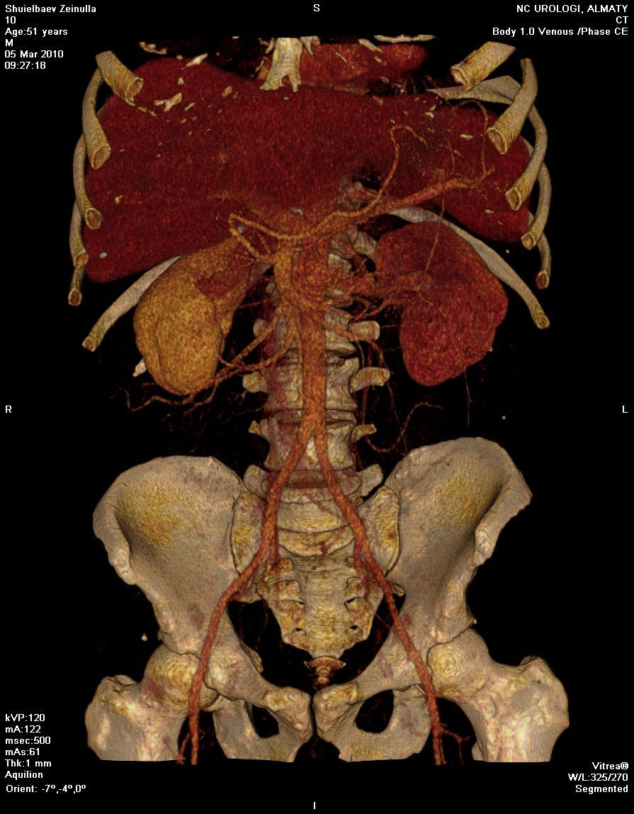 Артерии почек отходят от аорты в типичном месте, без признаков стенозирования. Добавочных артерии не выявлено.