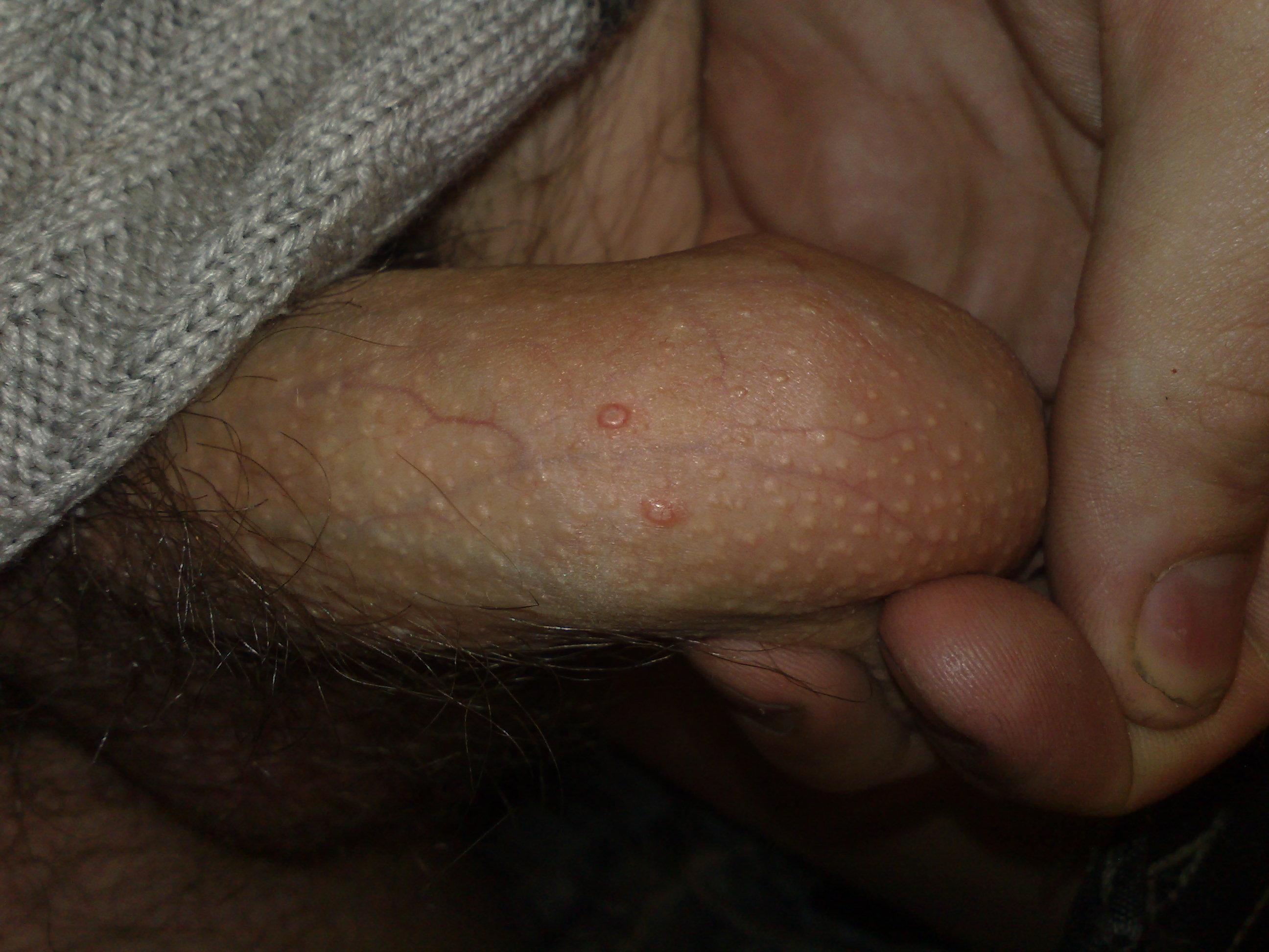 Здравствуйте! Примерно месяц назад заметил на теле полового члена некие пупырышки, были беленькие, думал воспалились волосяные луковицы, хотел выдавить, но не выдавливались, со временем пупырышки немного увеличились в размерах, сейчас около 1мм, не болят, никак себя не проявляют. На фото хорошо видно. Как думаете что это может быть и на что больше всего походит? У меня есть на руках бородавки могли ли они передаться на член? и если это они, то каким образом лечить? Спасибо!