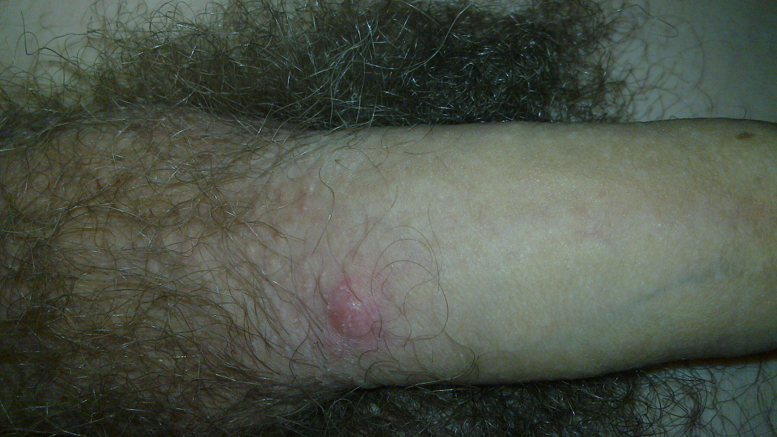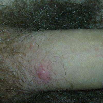 несколько дней назад появилась небольшая красная шишка у основания полового члена. что это может быть?