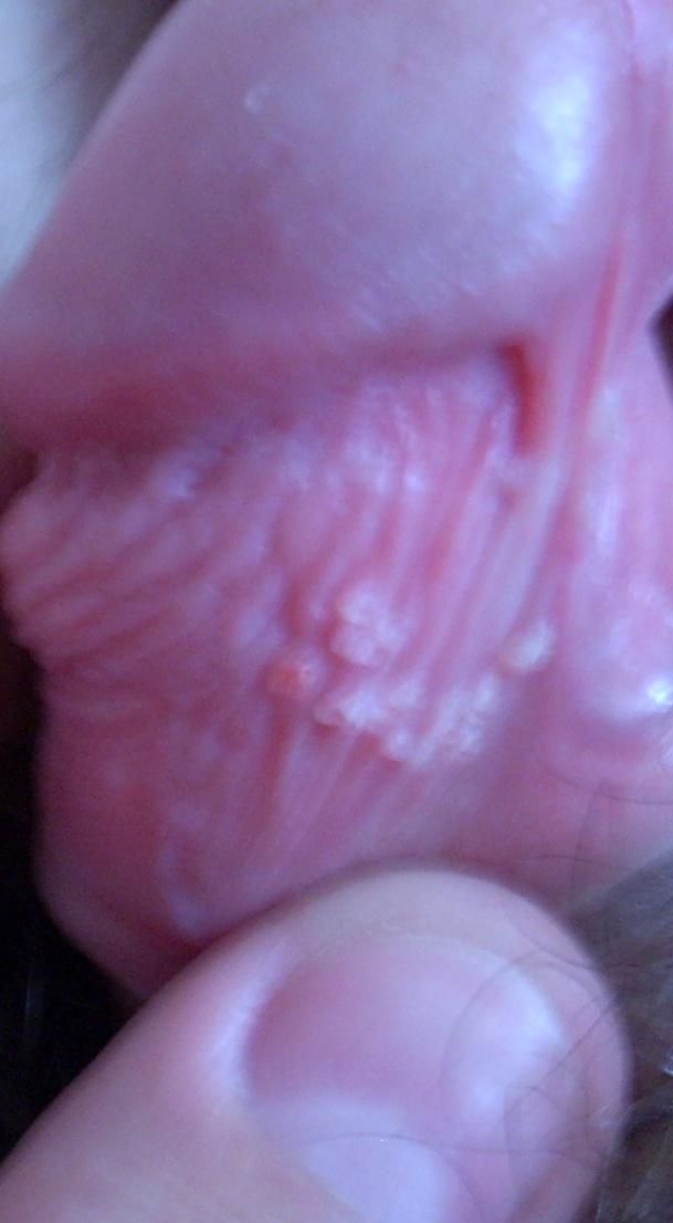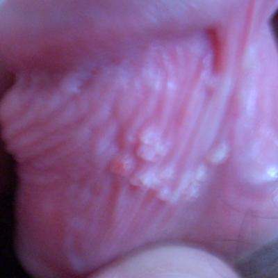 Где-то месяц назад у меня появились странные пузырьки, они вылезли все в одно время, и пока ничего не происходит, некоторые пузерьки по форме имеют острые концы, что это может быть? (Фото)