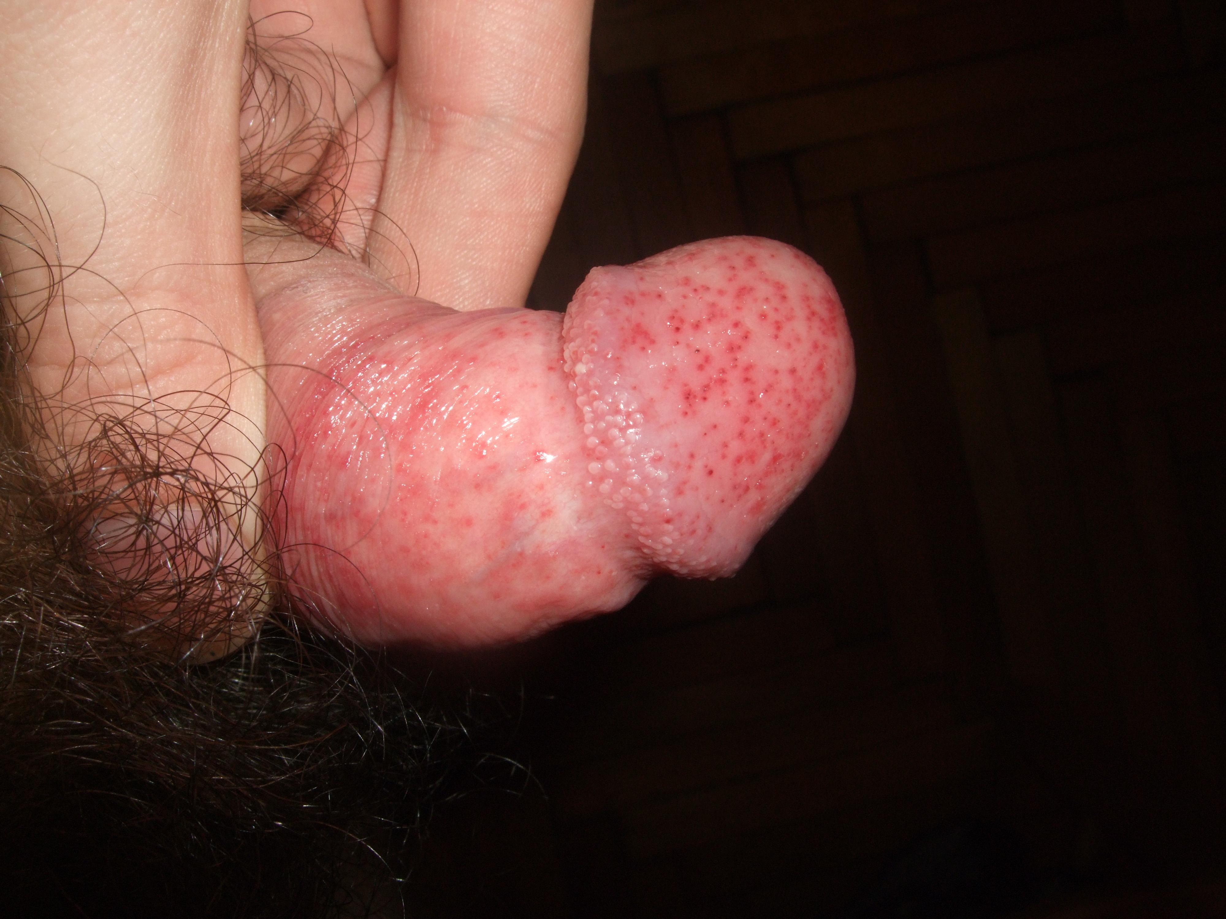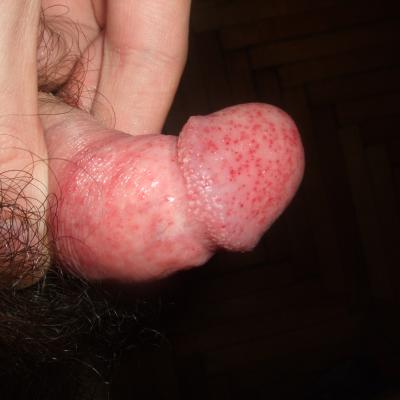 Здравствуйте Доктор!у меня такая проблема...после полового акта на головке члена выступают высыпания в виде красных точек,проходят на следующий день.половой акт-защищенный,и я и девушка зппп не болели!в начале полового акта практикуем оральный секс.хотелось бы узнать что это может быть?