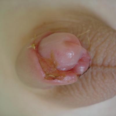 Здравствуйте! Моему малышу 2 года и 5 месяцев. Под кожей полового члена была смегма. 21 мая сделали обрезание, смегму почистили. Повязку сняли на следующий день (рекомендация врача). Половой член был отёкшим. Сейчас отёк почти спал, на некоторых участках сохраняется фибрин, корочки как при заживании раны,торчат нитки. Всё бы хорошо, только смущает, что крайняя плоть после обрезания фиксируется швами чуть выше головки полового члена - это нормально? То есть головка видна, но "шляпка грибочка" чуть прикрыта крайней плотью. Откроется ли головка полность к окончанию заживления или произошла спайка? Что делать, если спайка? (сразу после операции вид члена был симпатичным). Заранее спасибо!