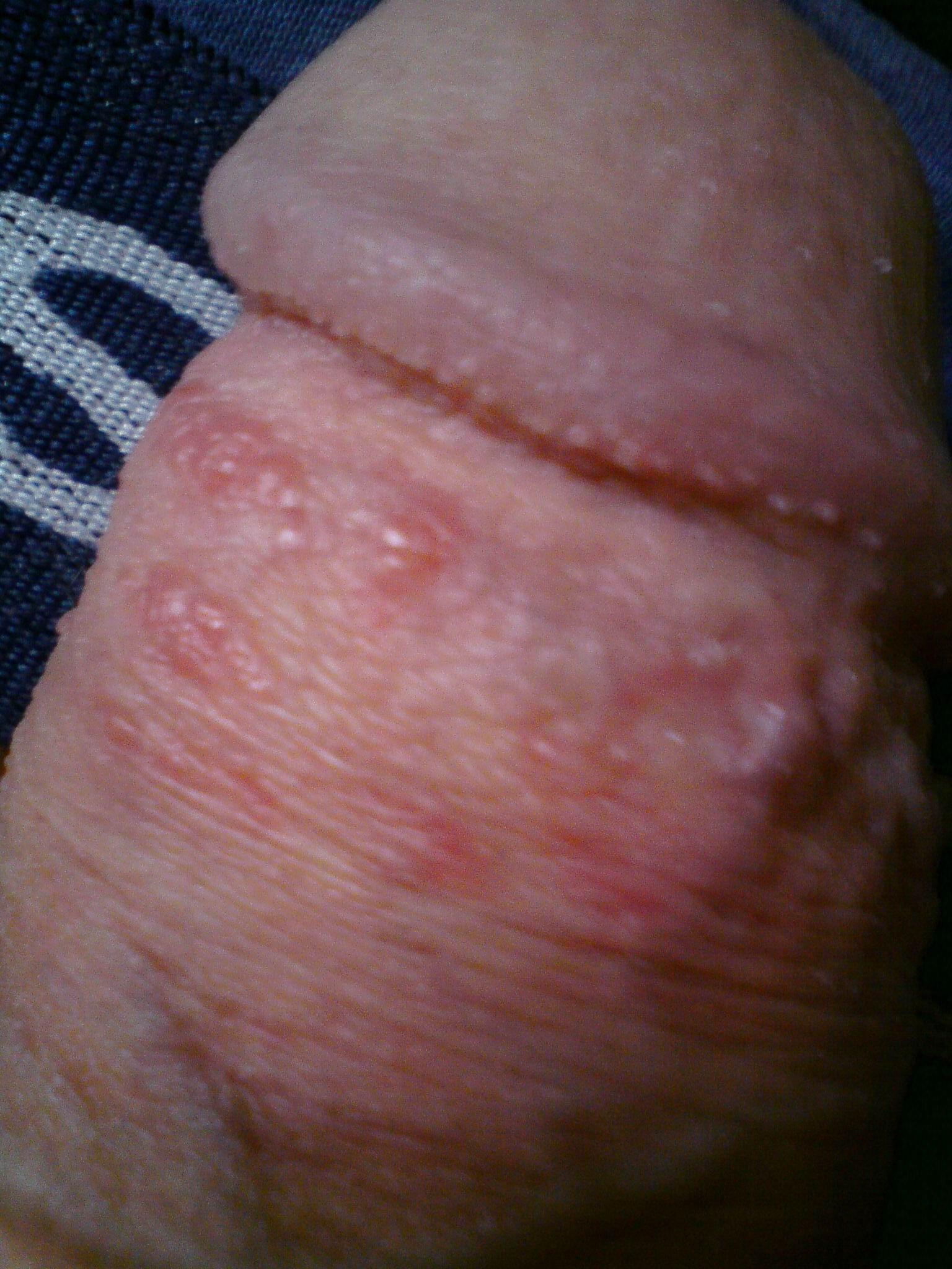 После секса у меня периодически появляются покраснения возле головки члена...иногда это бывает похоже на отёчность.