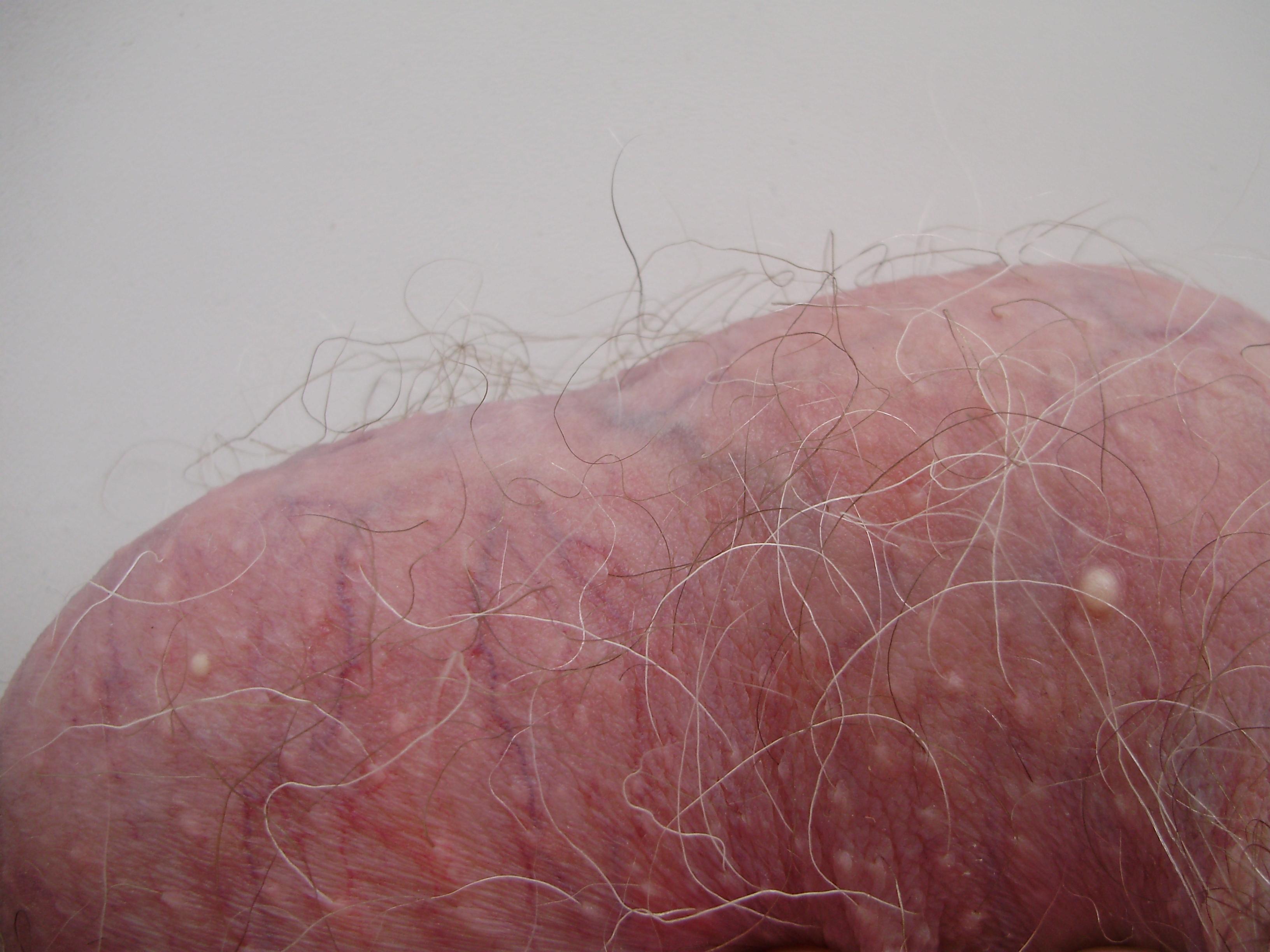 Еще на мошонке появились жировики, один где-то 2,5 мм второй 1мм, безболезнены, при выдавливании ничего не выходит, очень плотные.