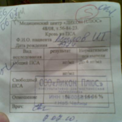 Здравствуйте, вчера получил результат анализа на ПСА, к лечащему врачу на приём не успел, помогите пожалуйста разобраться в результатах, файл прилагаю.