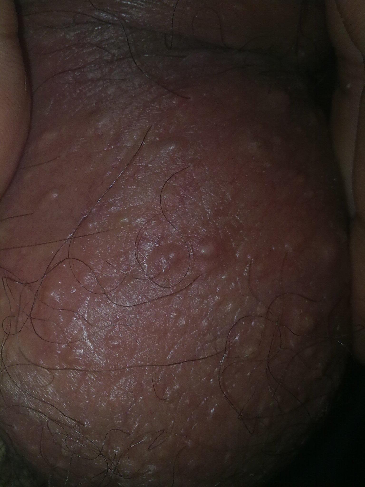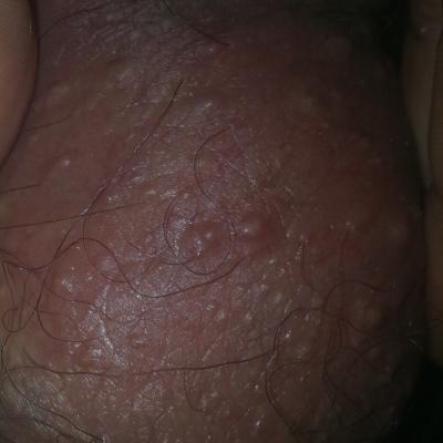 НА мошонке возникли подкожные отложения в виде бугорков с чем то белым внутри ,что это и как это лечить? фото прилогается!!