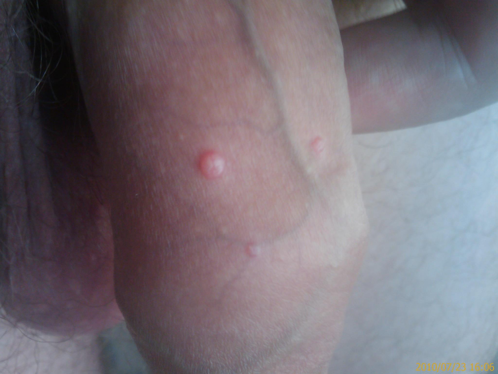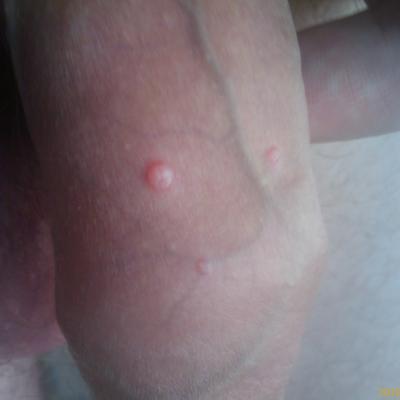 Здравствуйте! 3-4 недели назад у меня на коже крайней плоти появились красно-белые пузырьки (фото прикреплено). Никакого дискомфорта нету. Ни зуда, ни боли ничего. Что это может быть? И если обращаться к врачу, то к какому? Спасибо!