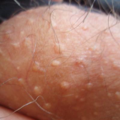 на нижней части кожи члена, у основания и на яичках разного размера пупырышки, при выдавливании которых из них выделяется белое мягкое вещество. Психологически мне доставляет неудобства, по ощущениям оно не ощутимо, не зудит, не чешится, не болит. Что это может быть и как это лечить или сделать меньше заметными? Надеюсь это не вариант нормы, потому что такую норму я очень не хочу :( Фото приклепил, очень жду помощи, спасибо...