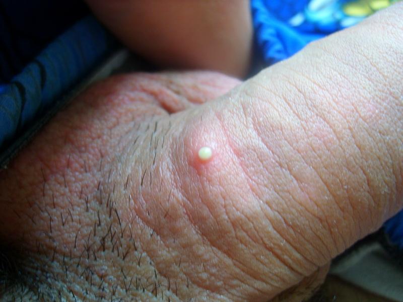 Здравствуйте! Помогите с проблемкой пожалуйста.. Пару дней назад на коже члена соскочил вроде как обычный прыщик. (См.фото) Если до него касаешься есть небольшая боль. Такие же прыщи как мне кажется выскакивают у людей и на лице. Посоветуйте какую либо мазь, или как от него избавиться???