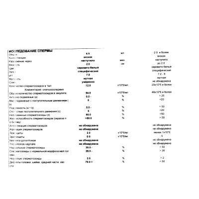 Муж сдал спермограмму, результат ниже. скажите, пожалуйста, что означают все эти показатели? Бесплодие ли это?