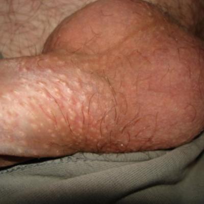 я как-то не обращал внимания ,но тперь обратил, и задался вопросом,что за многочисленные белые маленькие точечки на кожице яичек и у основания пениса. Как правило эти пупырышки совпадают с местом роста волос,скажите норма ли это? или это инфекция?