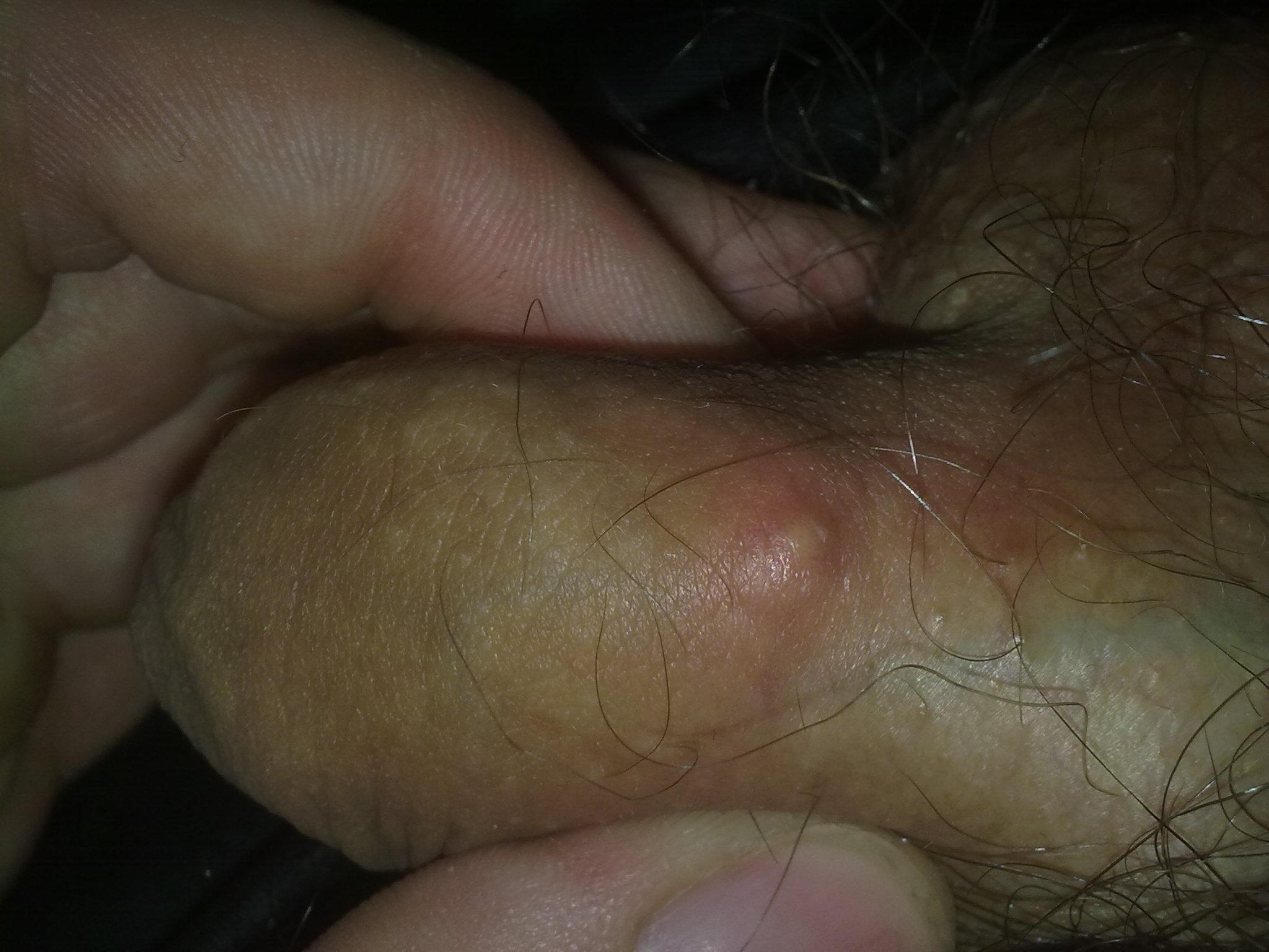 На стволе вскочил как мне кажется фурункул.На ощуп тверденький,размер примерно 0.4 0.7мм,когда трогаешь немножко болит,красного цвета с белой точкой по середине.половых связей не было примерно 2месяца.на фото ему два дня.
