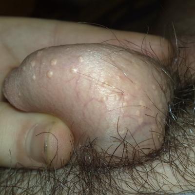 Помогите пожалуйста, у меня белые прыщики по всему члену и яичках, не беспокоят, появились примерно около года. Хотелось бы узнать что это, нужно ли их лечить?
