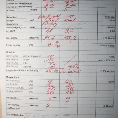 Мне 35. Живу в Германии. Женат, сыну 11 лет. Половая жизнь регулярная, от 4 до 7 раз в неделю. Уже более 5-ти лет у нас с женой неполучается завести второго ребенка. Примерно с 2006 года появились желтоватые сгустки в сперме, иногда вообще нет, иногда их много. 22.05.2007 ходил к Урологу на спермограмму. Доктор сказал все в порядке, и что проблема может и не во мне а у жены. Жена прошла у Гениколога полный тест и у нее тоже все в норме! 25.08.2009 я сново посетил Уролога. Спермограмма показала что сперматозойды как бы сонливые. Сам толком не понял что сказал врач, так-как не в перфекте владею немецким языком. 27.01.2011 снова посетил Уролога. Проверил мне Простату. Сунув палец мне в зад и помасировав Простату, отправил меня наполнить стаканчик мочей. Примерно через 10-15 минут согласно тесту, с Простатой все нормально и каких либо бактерий в моче не обнаружено. Теперь Уролог назначил на 1.02.2011 здачу спермограммы. Сижу сейчас и всякие мысли в голову лезут. Кто может мне предварительно сказать что за проблема у меня?