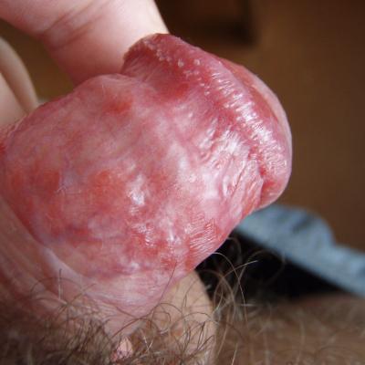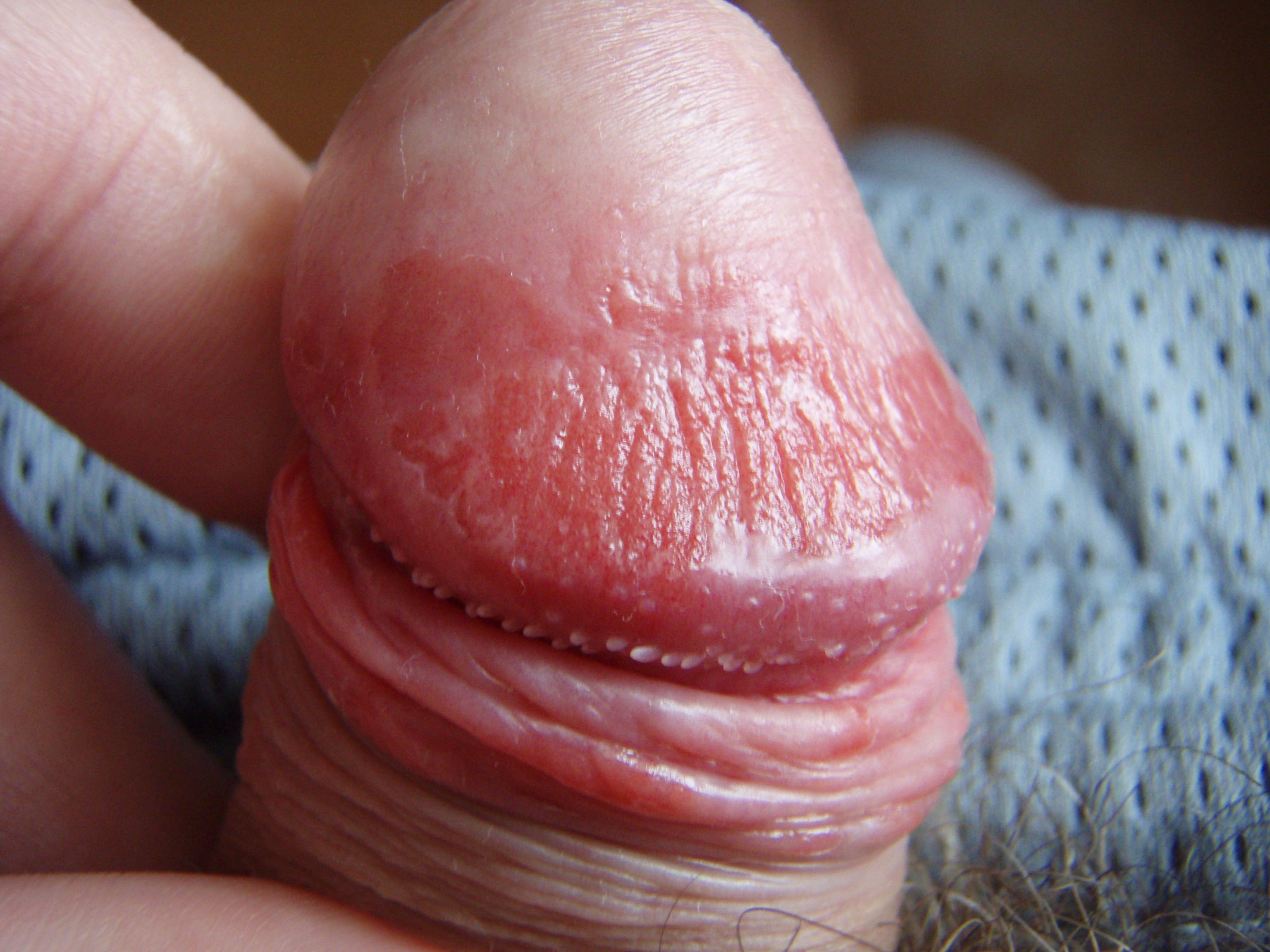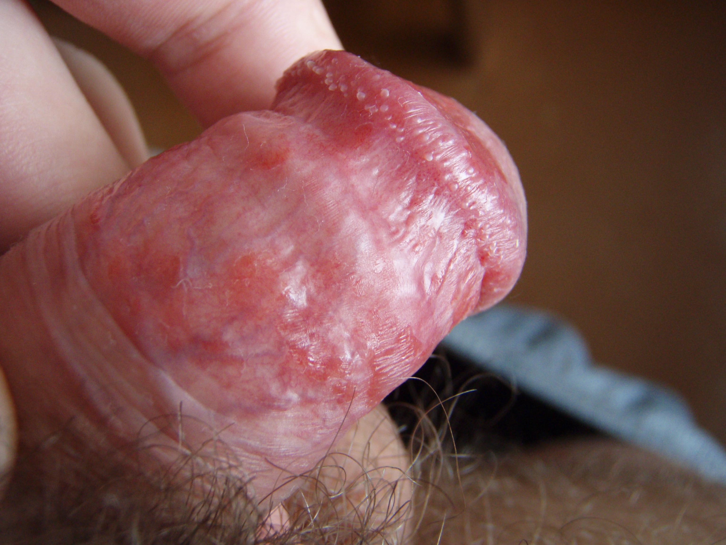 24 января заметил покраснения полового члена на головке, помазал детским кремом, покраснение спало но остались небольшие красные пятнышки, а в течении недели появились какие-то неровности, с утра область головки полового члена чешится, промываю, все успокаивается, но за сутки головка покрывается небольшим количеством скользкой жидкости. Фото прикрепил.