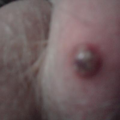 Здравствуйте у меня на половом члене появился прыщ недавно. Сначала он был белого цвета а потом через недельку где-то вздулся и стал желто-бардовым фото прилагается. Подскажите пожалуйста что это? Стоит ли обращаться к врачу или он сам пройдет?