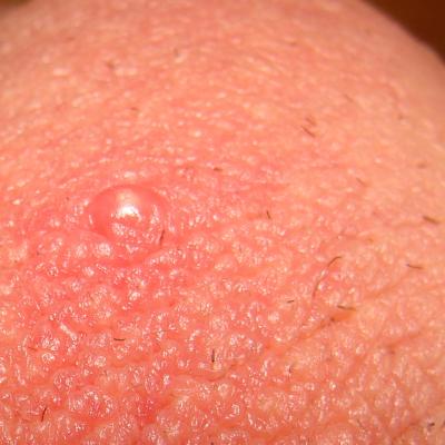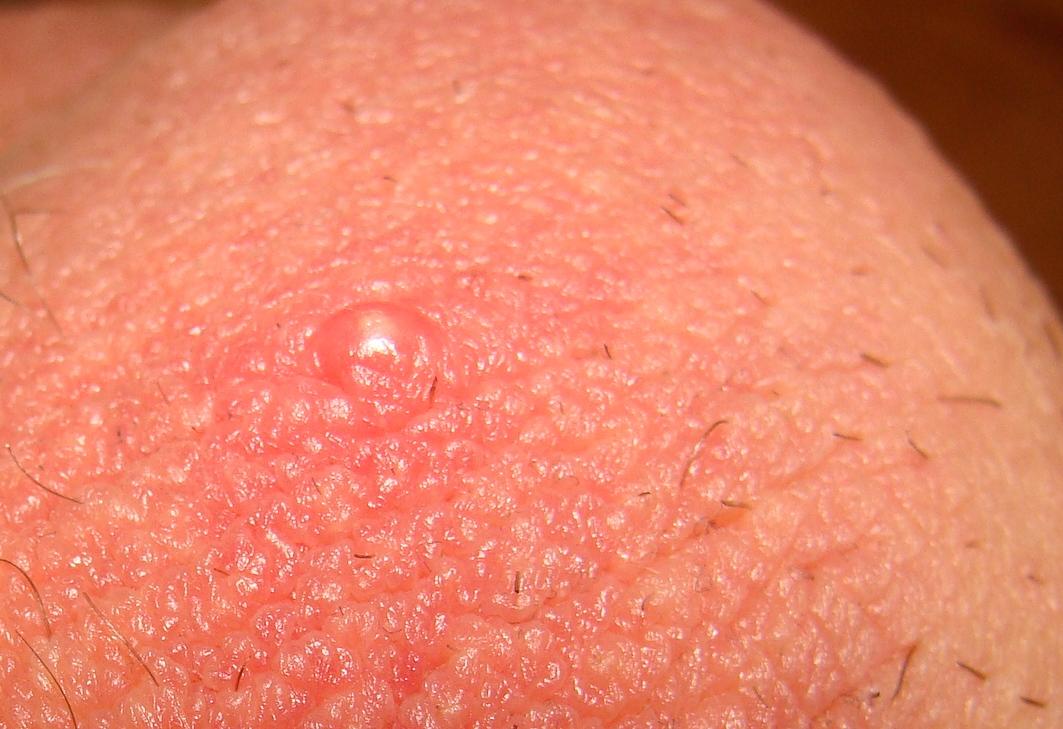 У меня неделю назад появилась болячка на мошонке, около 6мм телесного цвета, не болит. Подскажите, пожалуйста, что это может быть?