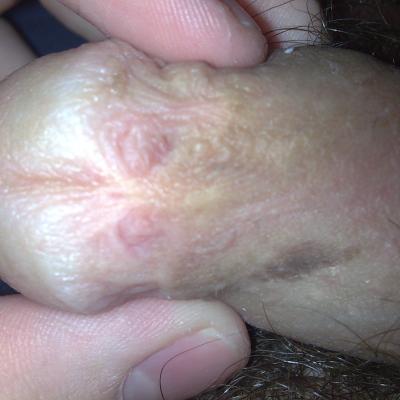 Здравствуйте. Не так давно заметил странные пятна по разные стороны от уздечки полового члена (не знаю были ли они до этого). Цветовая окраска у них чуть краснее или багровее кожи которая находится рядом. Один из них слегка приподнят над поверхностью, другой напротив - слегка вдавлен. Поверхность их чуть мягче соседней кожи. Не болят, не шелушатся, не чешутся, вобщем никаких неприятных ощущений не приносят Не защищенного секса не было. В детстве делали обрезание.