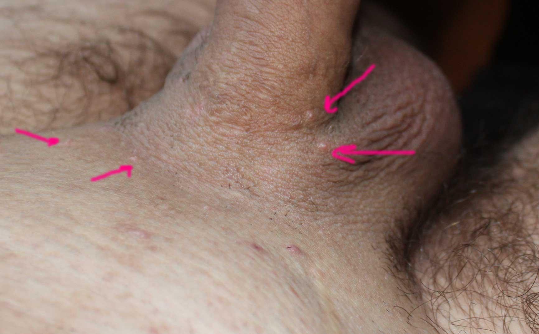 Сегодня побрился в районе машонки и обнаружил вот такие маленькие прищики, не зудят, не чешутся. Что это или это просто раздражение? На головке члена ничего нет только у ствола по всему "периметру". Секс с постоянным партнером в презервативе.