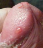Когда я мылся, заметил высыпание на головке полового члена. Чем-то похоже на "волдыри", что были у меня на спине при нerpes zoster, только в данном случае всего один "пузырек".