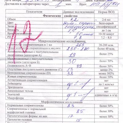 Расшифровка спермограммы.