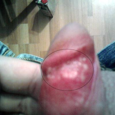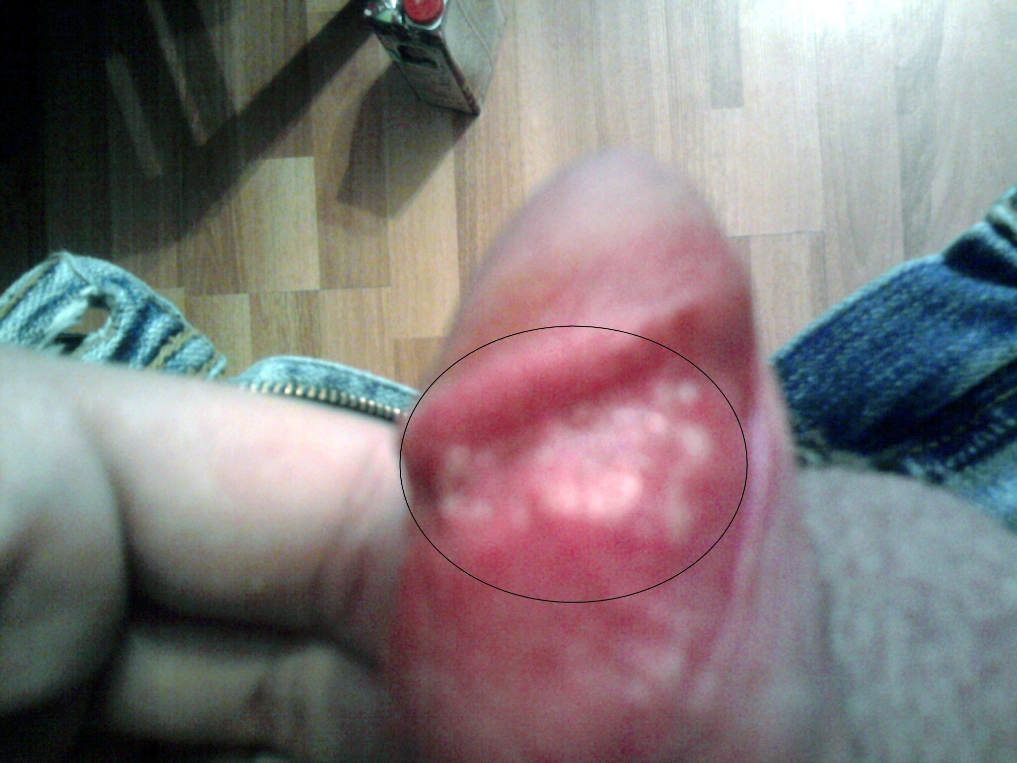На второй день появились белые волдыри/прыщи, и воспаление перешло и на вторую сторону головки.