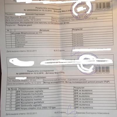 До лечения антибиотиками и после лечения был получен рост streptovoccus 10*3 КОЕ чувствителен ко всему а уреоплазмы и гардонел после лечения не выявлено.