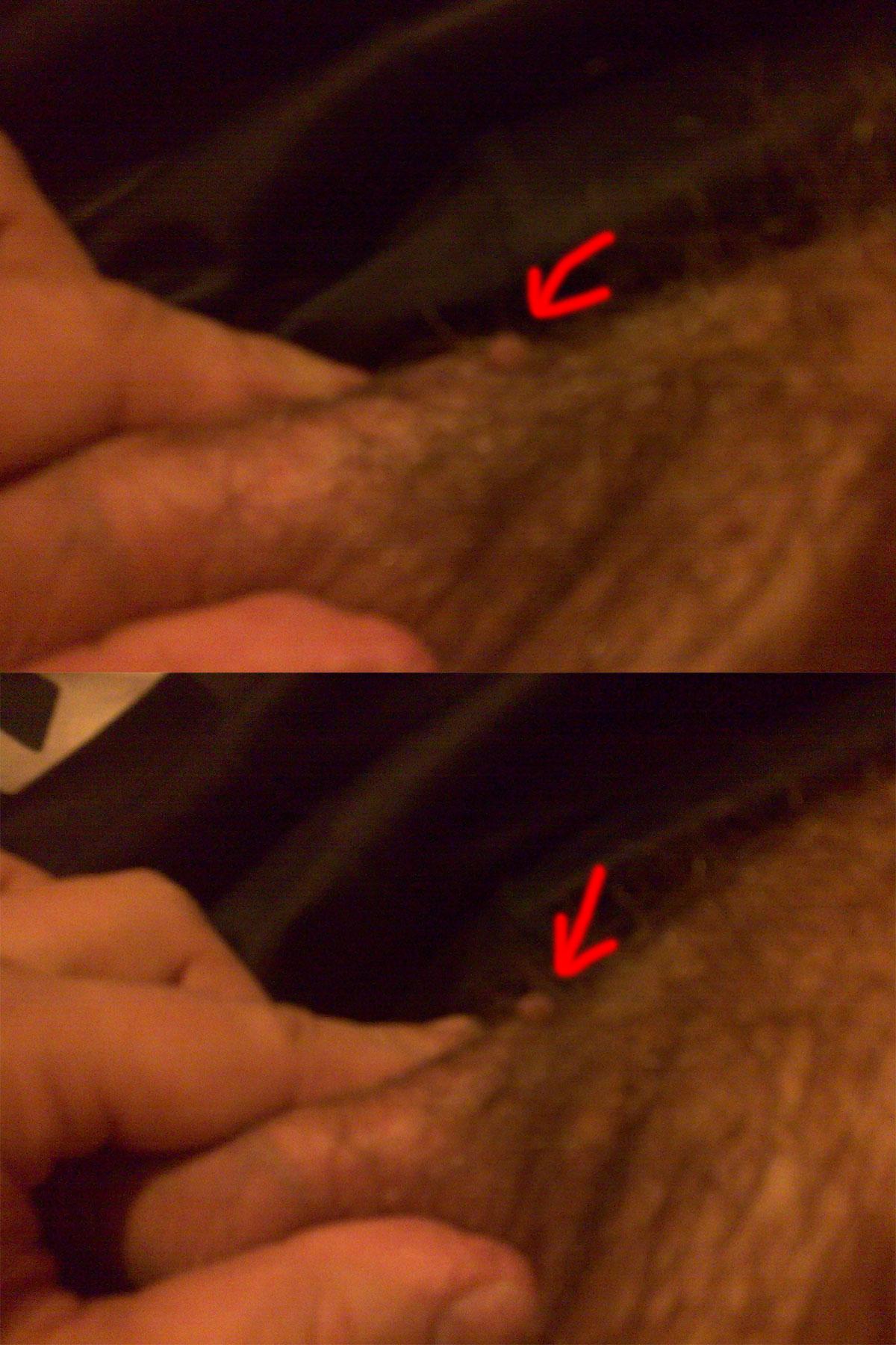 У меня на коже рядом с основанием члена появилась родинка. Неделю назад ее не было. Насколько это опасно и что следует делать? Родинка висячая размером 2-4 мм, однородного цвета, от цвета кожи не отличается. Не болит. Никакого дискомфорта нет. Следует ли обращаться к врачу или она пройдет? Мне 28 лет. Прилагаю фото.