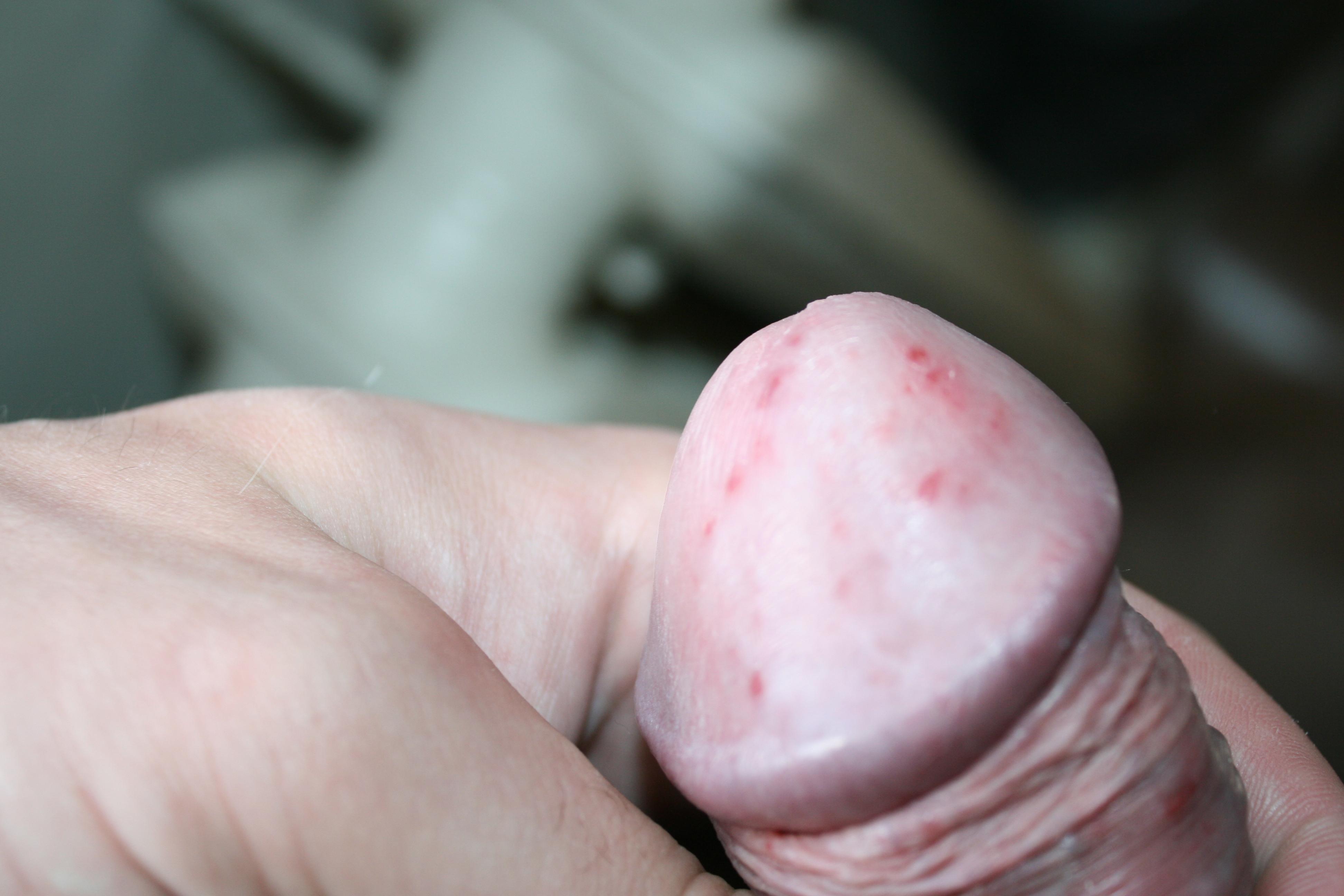Добрый день! 4 дня назад появились странные красные точки на головке и коже рядом с ней. Все это время обрабатываю их мирамистином, так как времени на поход к врачу пока что совсем нет, но заметных результатов это не дало. Ощущаю зуд - первые два дня сильнее, затем реже и не так выражено. На ощупь они гладкие и не выступают.
