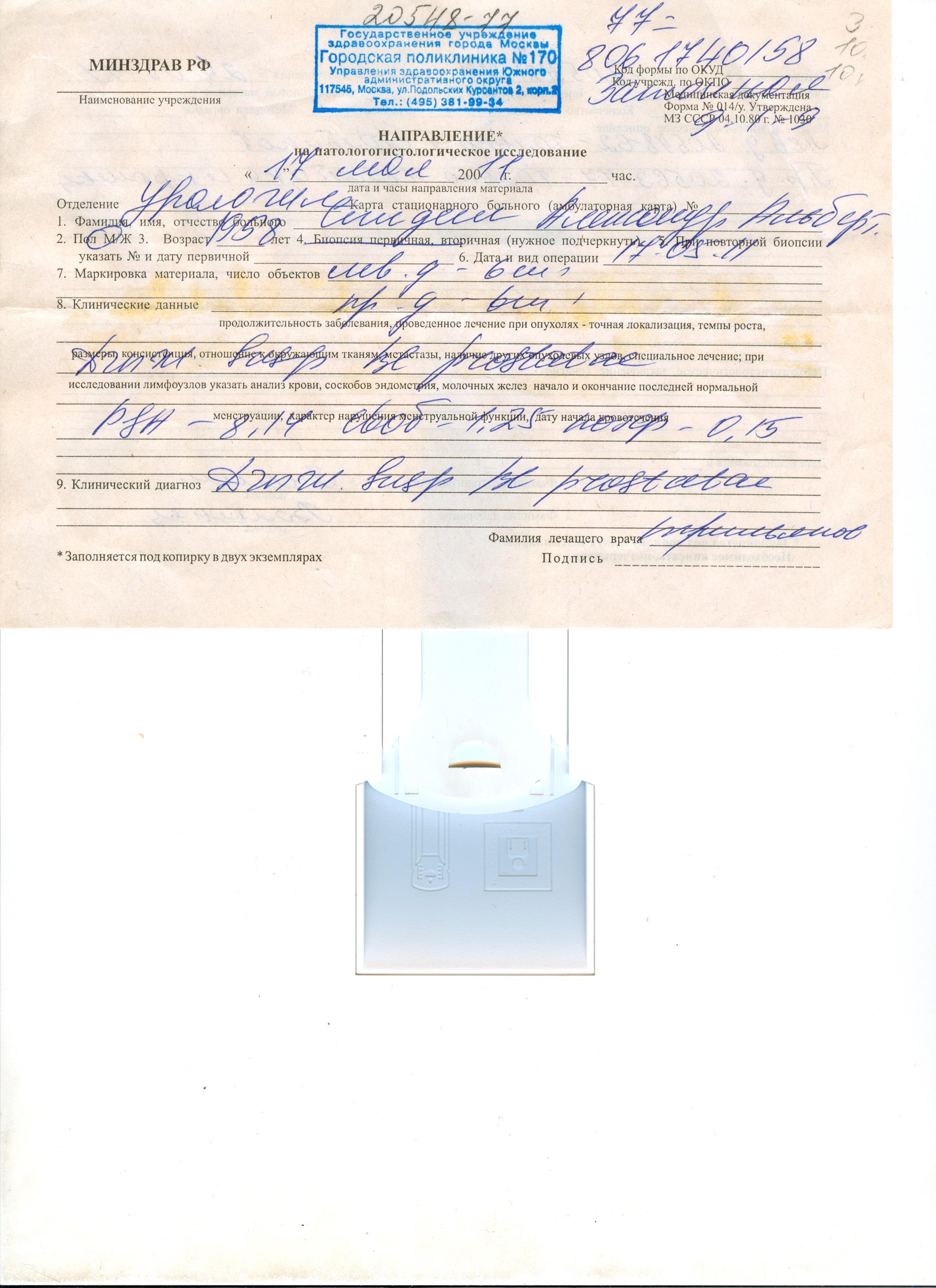 Уважаемый Александр Альбертович! Повышенный ПСА и результат биопсии установили диагноз злокачественного образования предстательной железы. Но этого недостаточно для выбора метода лечения, т. к. опухоль надо стадировать, т. е. точно определить стадию. Для этого необходимо выполнить: