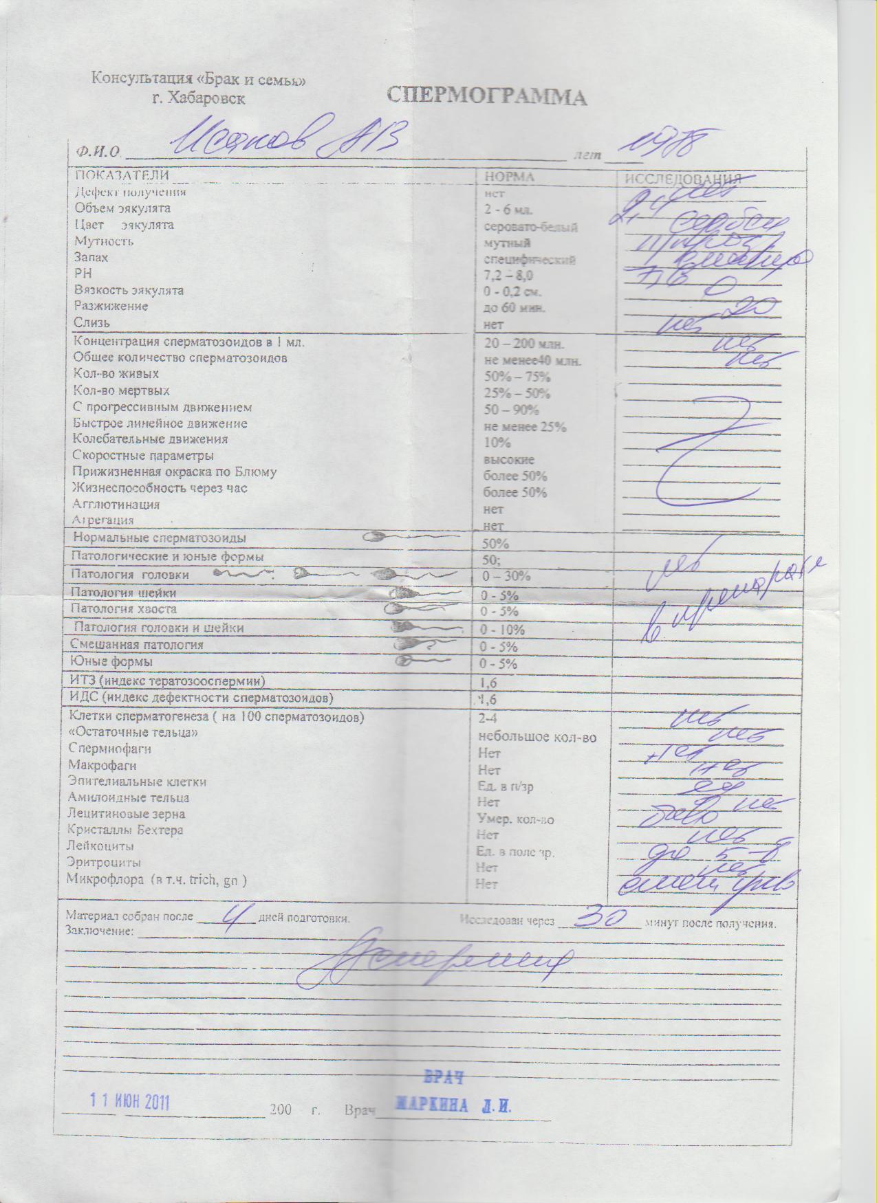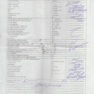 помогите расшифровать спермограмму мужа:объем эякулята-2,4.цвет-эякулята-серо-белый.мутность-прозрачное.PH-7,6.Вязкость-0.слизь-нет.концентрация спермотозоидов в 1мл-нет.Общее количество спермотозоидов-нет.