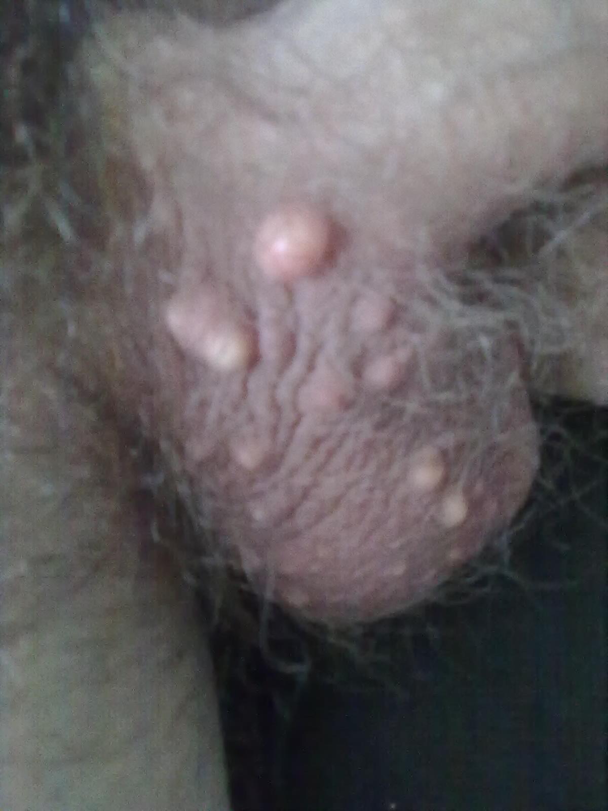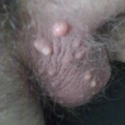 Здравствуйте, мне 23 года, уже второй год на яичках сыпь в виде больших белых прыщей диаметром до 5 мм, сопровождаются зудом. Подскажите что это такое может быть, страшно ли это для здоровья? И как возможно это излечить? На всякий случай я прикрепил фото. Заранее большое спасибо.