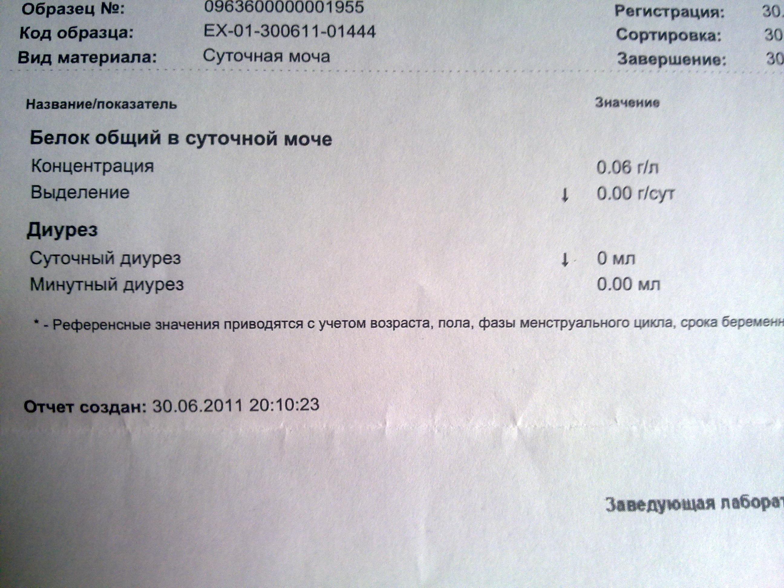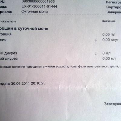 Анализ в отношении суточной экскреции белка нормален.