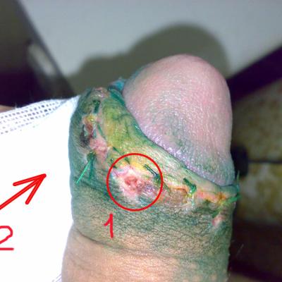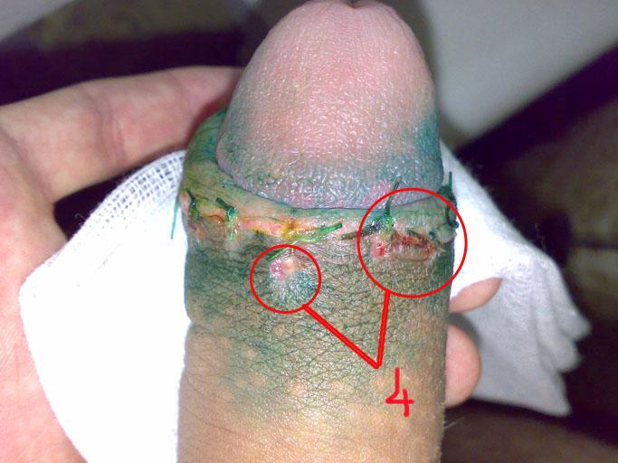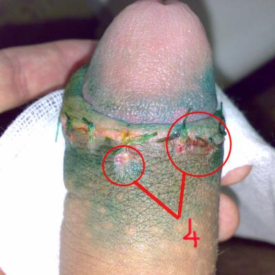 (№4) - какие-то ранки от входа или выхода шва,та что поменьше сильно болит при эрекции.Что я могу сделать.