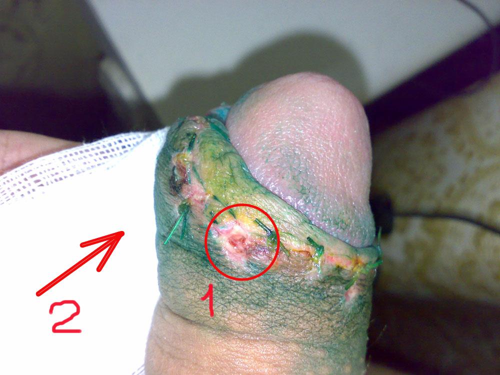 на фото (№1)- это ранка,на ней был УЗЕЛОК от шва,оттуда всегда чуть-чуть кровило после утренних эрекций,сегодня он оторвался с перевязкой,крови не было,эрекций еще тоже не было. Волнует что дырочка такая большая осталась,может что-то нужно сделать?И не разойдется ли остальной шов теперь?