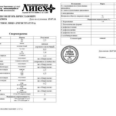 Скажите,пожалуйста,а сколько по времени займет лечение,чтоб повысить показатели спермограммы до того уровня,чтоб можно было забеременеть,если сейчас она такая как в прикрепленном файле.